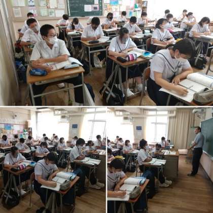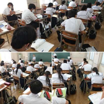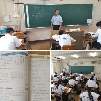 3年生の数学では章末問題について解いていました。2次方程式を利用した基本の問題について学習していますがどうですか。週に4回ある数学の授業でしっかり今までの力をつけることができていますか。