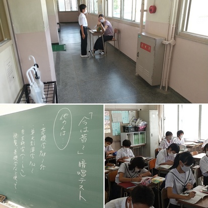 1年生の国語の授業は教科書の暗唱テストを行っていました。先生と廊下でマンツーマンになって暗唱をしていました。自分の順番がまわってくるまで教室では声に出して練習を繰り返していました。
