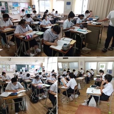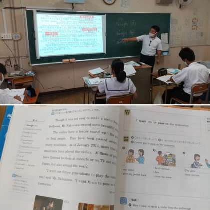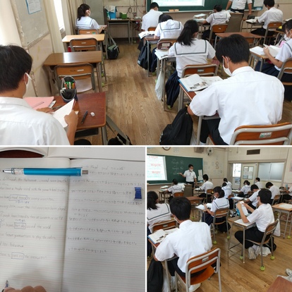 3年生の英語の授業は教科書の章末問題を学習していました。担当の先生から文法事項の説明がありました。また、少しずつ長文に慣れる為に予習をする習慣を徹底することも授業中の中で話されていました。