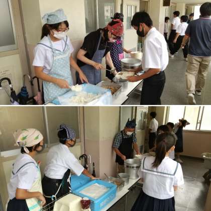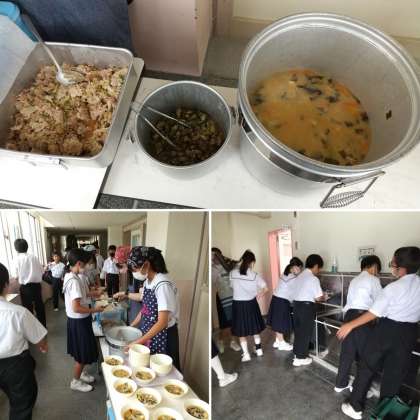 4時間の授業を終えて今から給食の時間が始まります。給食当番が丁寧に配膳をしてくれています。給食の準備、手洗いなどもしっかり行えています。さあ、今日の給食も楽しみですね。