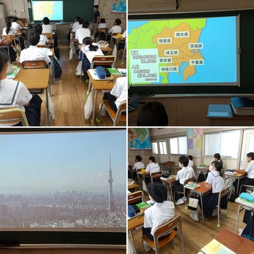 2年生の社会の授業では地理の学習で関東地方について学習しています。関東地方には言うまでもなく自分たちの住む日本の首都東京が存在します。今から関東地方の様々な事柄を勉強します。担当の先生の解説や、教室で使っているディジタル教材はとても分かりやすく興味も持てますね。