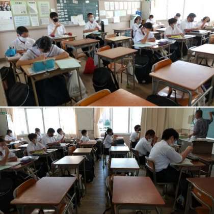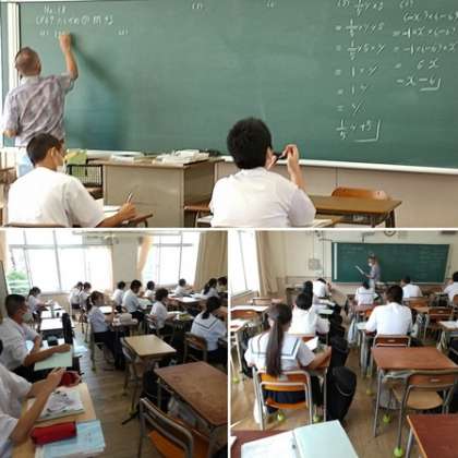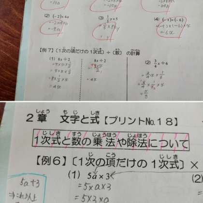 1年生の数学の授業では文字と式の学習について取り組んでいます。1次式と数の乗法や除法について解いていました。