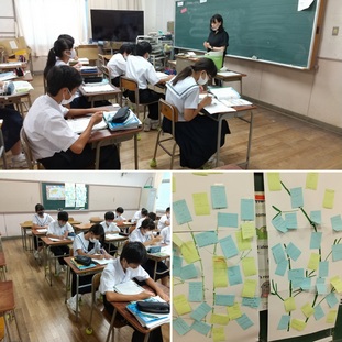 1年生の英語の授業では「単語の品詞」について学習していました。動詞、形容詞、副詞、助動詞、名詞など様々な品詞が登場しますが少しずつそれら品詞の決まりや区別について理解を深めていって下さい。話は変わりますが教室の後ろの七夕の飾り物に心が和みました。