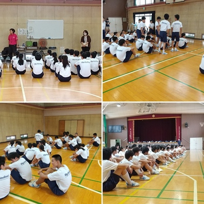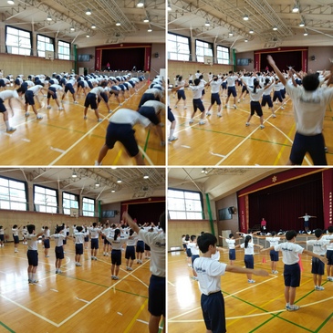 今日から新たに1週間が始まりましたね。今日も朝は清々しくいい天気でした。先週から体育大会の練習も各学年で始まりました。来週の体育大会のために取り組みを頑張ってください。写真は3年生の先週の学年練習です。