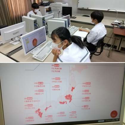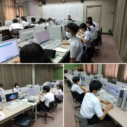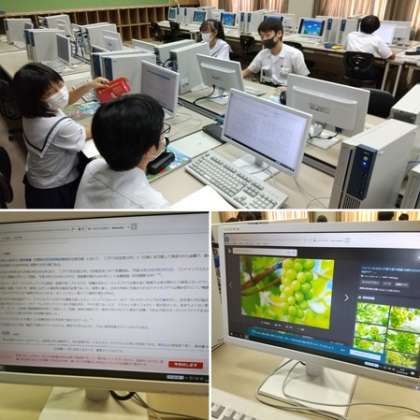 2年生の技術の授業では日本の改良に関する技術について学習しています。品種改良についてパソコンを使って自分の興味のあるものについて調べています。先生の説明にもしっかり耳を傾けていました!