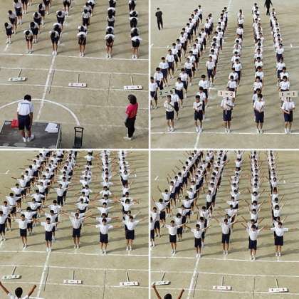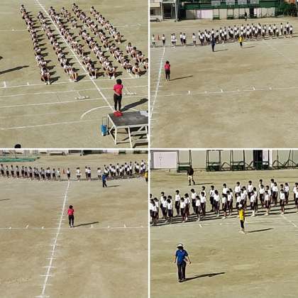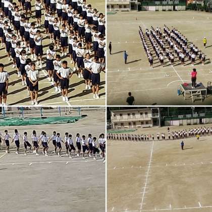 2年生の総合の授業では体育大会の練習を行っていました。行進練習や体操の練習などしっかりそろっていて素晴らしかったです。体育の時間でも中々学年全体で練習することはないので全体練習がしっかりできて良かったです。