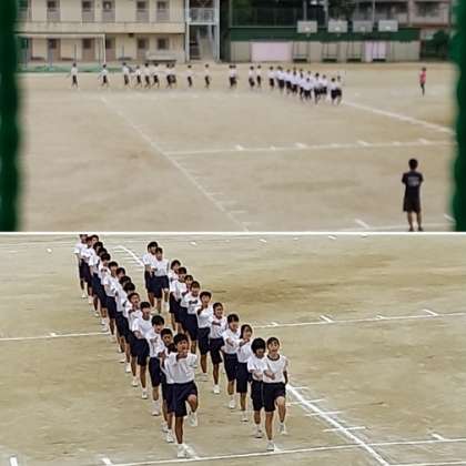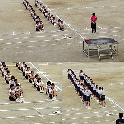 2年生の体育の授業はグランドで行われています。来週の体育大会の練習を行っていますが日に日に行進練習や声をしっかり出すことができるようになってきていますね。本番が楽しみです!