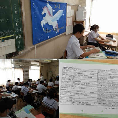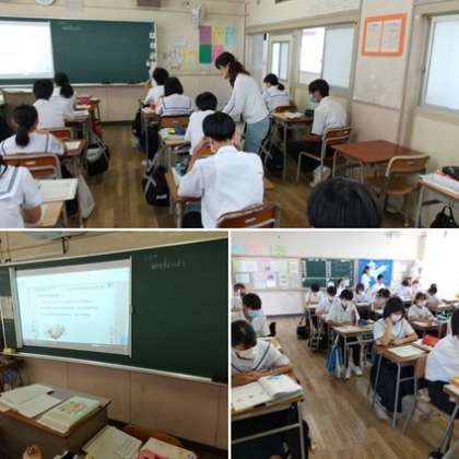 2年生の英語の授業では単元の最後にあたる「Lets read」について学習しています。授業の前半は発音練習を行っていました。生徒たちは恥ずかしがらずに英語を発音していました。