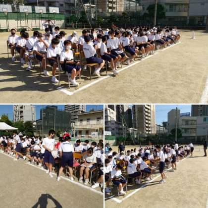 今日の午前中は体育大会の予行練習が行われました。今までの学年練習の成果をしっかり出せるような全体練習ができればと思います。生徒の皆さん頑張りましょう。
