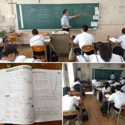 3年生の数学の授業では教科書の終盤にある章の問題Bの練習問題について学習しています。関数について色々な解き方がありますが練習問題の中で担当の先生がこの時はこのやり方をすればできるというアドバイスが数点ありました。しっかり覚えましょう。