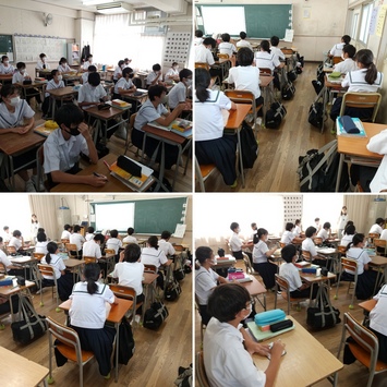 2年生の英語の授業では授業の始めにリスニング問題に臨んでいました。電話番号や数字が連続して聞こえてくるリスニング問題は少し難しいですよね!少しずつ慣れていって下さい。
