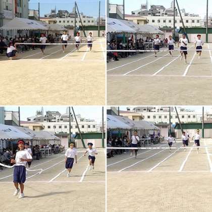 いよいよ競技が始まりました!50m走や100m走が行われています!練習でも体育の授業でも頑張ったことからスタートのフォームも完璧です!
