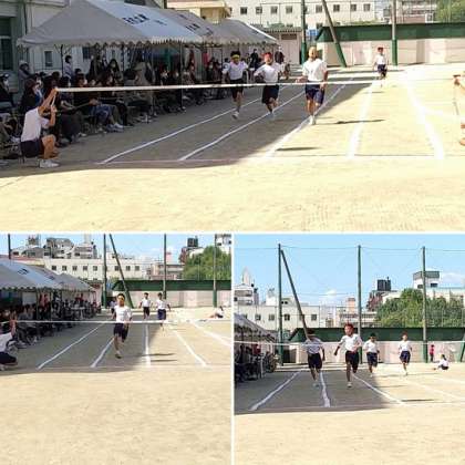 同じく50m走りや100m走の写真です!各学年の生徒たちはしっかり頑張っています!勝っても負けても100点!!