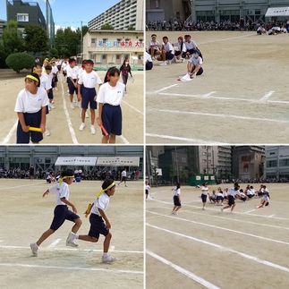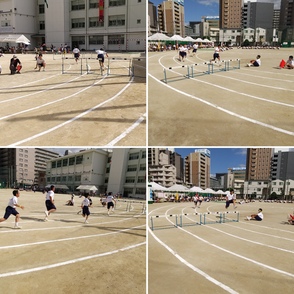 午後からも生徒たちは暑さを吹き飛ばすくらい頑張っています。応援席の声が学校中に響き渡っています。写真は障害物リレーや1年生学年種目です。