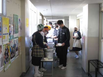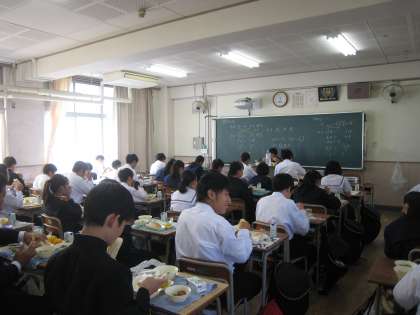 今日は、みんなで配膳しているようすや食べている教室のようすを撮りました。