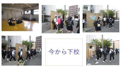 今日(21日)、6時限目にあたる時間帯に防災の取り組みを行いました。以前行った地震や津波の避難訓練やこの後、11月に予定されている火災の避難訓練とは少し趣向を変えての時間となりました。今回の防災の取り組みの目的は次の2点で、1点目は防災への意識を高めるとともに、地域ごとで集団下校することで生徒同士の顔合わせをし、地域ごとの集団作りの一環とすること。2点目は各地域の最高学年の生徒を中心とし、活動を行うことでリーダー育成の機会とすることでした。3年生には事前指導を行い、リーダーとなる生徒の選出やどのように地域ごとに集まるかなど、指導の仕方を含め取り組んできました。今日、生徒たちは担当の先生とともに19の地域に分かれ集合場所に集まり自己紹介を行ったり、解散場所の確認を行ったり、リーダーの3年生を中心にミーティングを済ませてから解散場所まで集団下校を行いました。交通ルールを守って、静かに行動できていたことはとても良かったと思います。