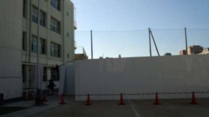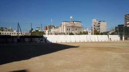 今日(27日)、運動場が工事をするためのエリアと体育の授業や部活で使うエリアに分けるための万能鋼板が設置されました。明日以降、現場事務所の設置工事が始まります。