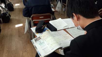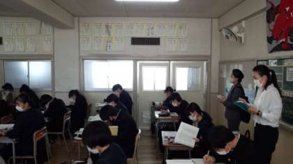 今日(29日)は3時限目に教育委員会から2名の先生が来校されて一緒に3年生の社会科の授業を見学しました。公民分野での「国会や立法について」のプリントに一生懸命取り組んでいました。今、中学生の皆さんにとってはドラマやスポーツ、歌番組やお笑い番組が一番面白いと思いますが、国会や政治についてのニュースや報道番組も授業と関連づけると面白く見ることができるようになるかもしれません。中学生の早い段階から社会の動向や政治に興味や関心を持ち、自分たちが生き抜く将来について仲間とたくさんディベートが出来るようになると頼もしいですね。