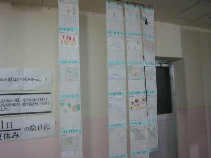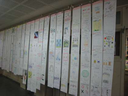 未来の自分を想像しよう作品など授業で取組んだ作品がたくさん展示されていました。