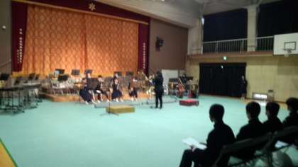 コロナ対策ということで、規模を縮小した発表会となりましたが、1年部員8名のオープニング曲「ロマネスク」から始まりました。先日開催した体育大会で、校旗降納時に演奏した曲でしたが、少し緊張気味だったようです。その後、2・3年部員も加わり31名での演奏会となりました。続いて、2年生への発表会も終わり、最後は3年生への発表会でした。アニメ『鬼滅の刃』のオープニング主題歌「紅蓮華」から始まったステージは星影のエール、ディズニーメドレーと続き、全7曲とても素晴らしかったと思います。最後は会場からのアンコールに応えてくれました。3年生部員はこれで引退となりますが1・2年部員がしっかりと伝統を引き継いでくれるものと期待しています。お疲れさまでした。