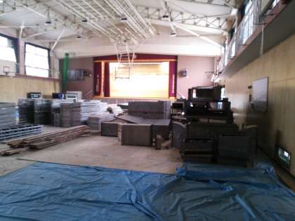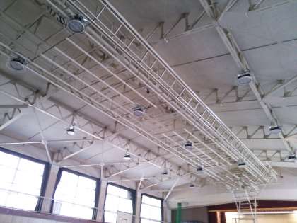 写真は体育館・・・照明がLEDに変わりすっきりしました。