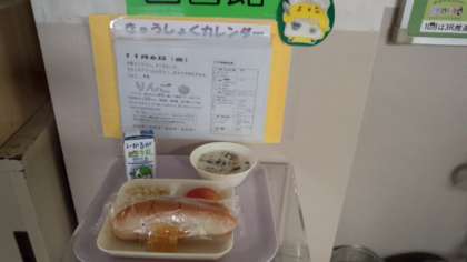 きのこのクリームシチュー キャベツのピクルス りんご マーマレード 大型コッペパン 牛乳