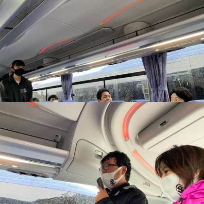 帰り際、少し強めの雨が降ってきました。急遽、解散式はバスの中でクラスごとです。どんな事にも対応出来る力、素晴らしい。