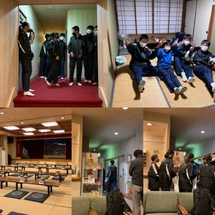 入村式が終わって、それぞれ民宿に入っています。シャーレ中西の様子をお伝えします。あとからほかの民宿にも伺います。お楽しみに