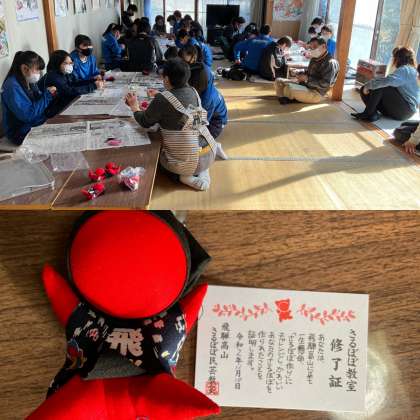 思った以上にさるぼぼ作りに時間がかかっています。リリアン難しいね。最後はお守りをつけて終わりです。さるぼぼ教室修了証ありがとうございます。