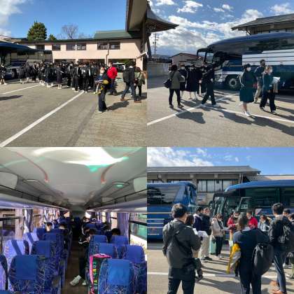 バスは高山市内に入りました。出発は午後3時30分の予定です。ゆっくり市内散策しましょう。グループ行動ですね。お昼ご飯もグループごとで仲良くお願いします。