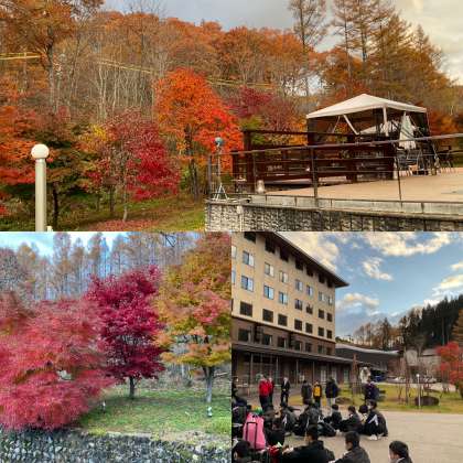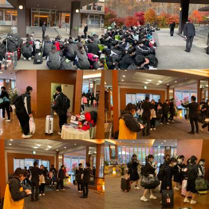 紅葉がとてもきれいなとこで、気温は2℃です。入館式を済ませやっと検温そして、消毒を行いホテル内に入れました。
