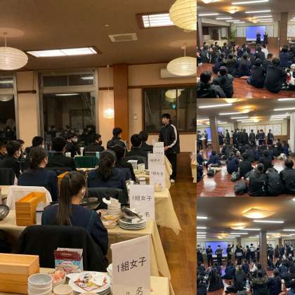 ごちそうさま、夕食後は大広間でレク大会です。午後7時からです。お腹いっぱいのあとですが、係の指示に従って盛り上がりましょう。どんな時間になるのか楽しみですね。