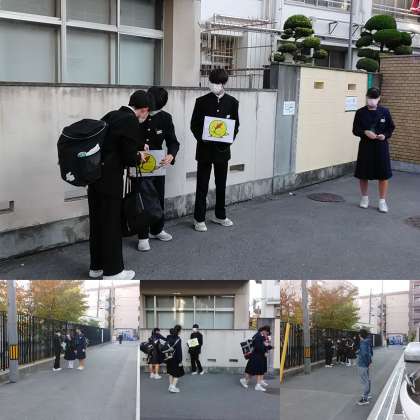 写真は、昨日から登校時、正門付近で生徒会が実施している赤い羽根共同募金の様子です。ご協力ありがとうございます。明日は、1・2年生の校外学習のため募金活動はありませんので、募金したい人は金曜日か土曜日にお願いします。
