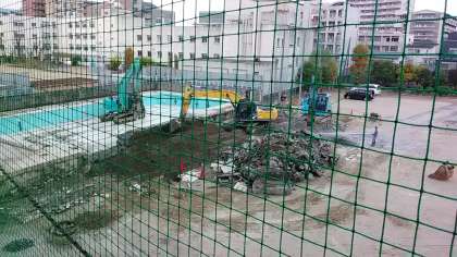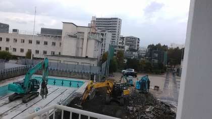 とうとうプールの中に重機が入り、解体工事を雨の中進めています。プール自体の解体どれくらいの日数がかかるのかな。月2回の工事関係者との会議が週明け火曜日にあるのでわかりましたらお知らせいたします。