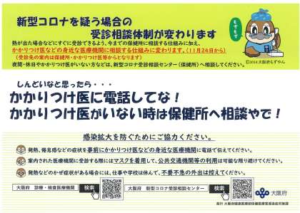 昨日(20日)お知らせしましたが、11月24日から新型コロナを疑う場合の受診相談体制が変わります。