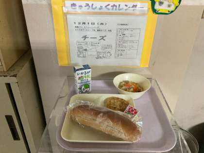 とうふハンバーグ カリフラワーのスープ煮 固形チーズ 黒糖パン 牛乳