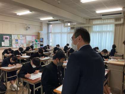 今日(10日)、3年第4回実力テストが終わりました。今回のテスト結果は卒業後の進路選択において、第1志望等の高校の合格目安に対してどうなのかという見極めをする判断材料の一つとなります。