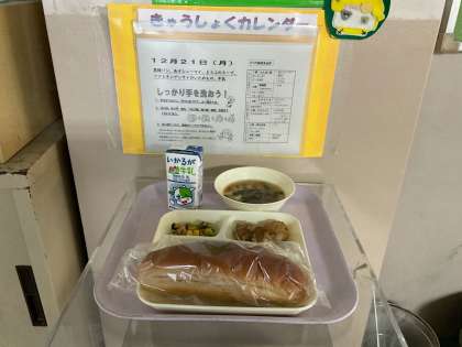あげシューマイ とうふのスープ ツナとチンゲンサイのいためもの 黒糖パン 牛乳