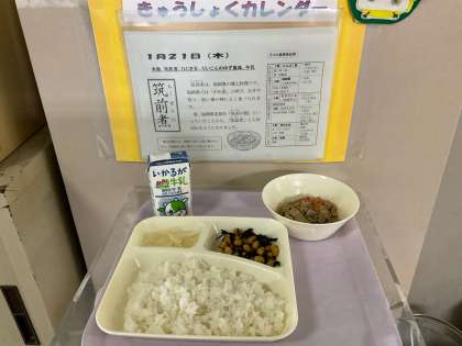 筑前煮 ひじき豆 だいこんのゆず風味 ごはん 牛乳