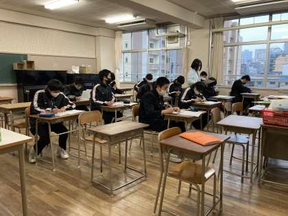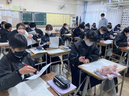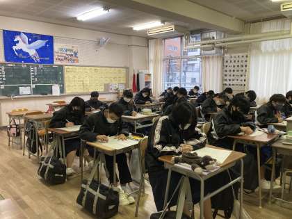 今日(22日)、2年生は6時間目に来週実施する漢検のプレテストを行っていました。各自が選んだ受験級ごとの教室に分かれて、配布されたテストプリントにチャレンジしていました。今回のプレテストで合格点をクリアすると当日(28日)は少し安心して受験できますね。また、クリアできなかった人は家で土曜日・日曜日と猛特訓が必要ですね。59期生の皆さん頑張りましょう。