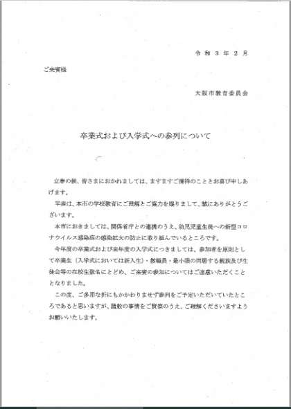 ◆下記をクリックすると卒業式および入学式への参列についてのプリントが確認できます。