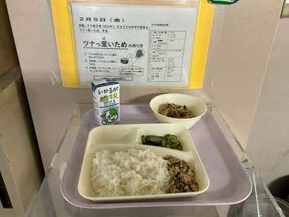 すき焼き煮(近江牛) きゅうりのゆずの香あえ ツナっ葉 いため ごはん 牛乳