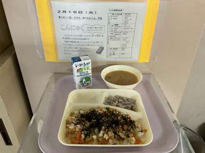 鶏ごぼうご飯 みそ汁 焼きれんこん 牛乳