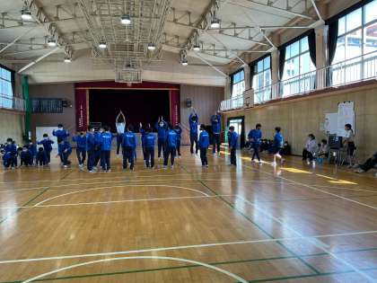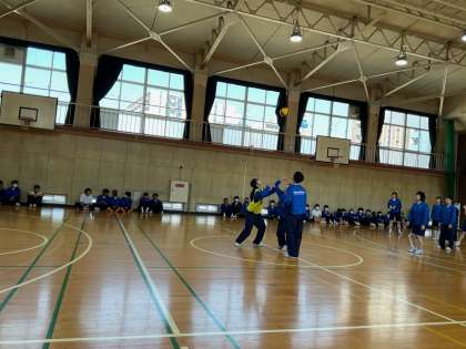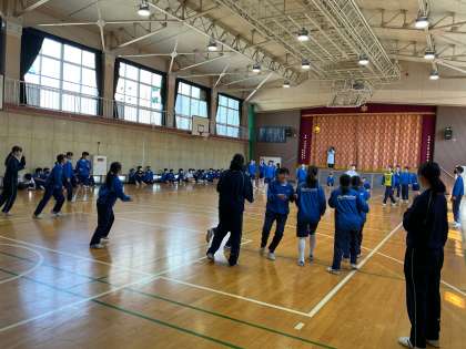 今日(23日)の午後からは2年生が体育館でスポーツ大会をしています。ドッチボール大会の前のレクレでは子どもたちの意見を取り入れたゲームでとても盛り上がっていました。「ねことねずみ」というレクリエーションはドッチボールのウォーミングアップにぴったりのゲームでした。仲間と一緒に体を動かすことはとても良いことですね。教室に戻ったらうがい、手洗いや手指の消毒を・・・
