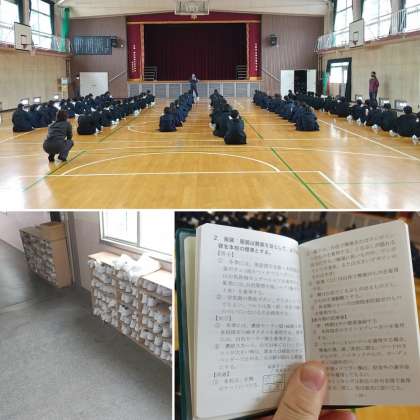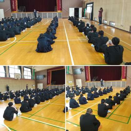 今日(12日)、5時限目は学活でしたが、1年生は体育館で学年集会を行い、生徒手帳に書いてある内容について確認していました。そして、放課後は全学年での教育相談活動が学級ごとにありました。今週一週間は教育相談ウィークです。