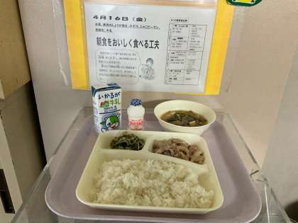 豚肉のしょうが焼き みそ汁 じゃこピーマン 発酵乳 ごはん 牛乳