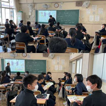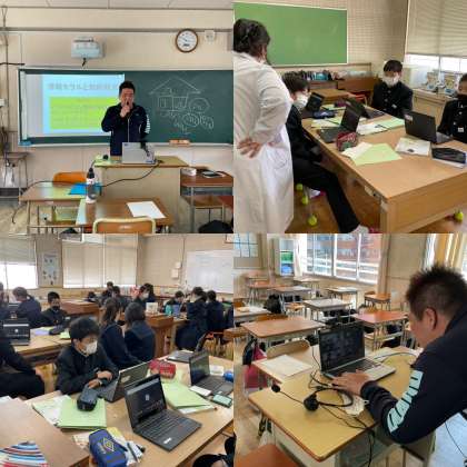今日(20日)、1年生も中学の授業に少し慣れてきたようです。1組は英語の授業であいさつの仕方を学んでいました。世界共通であいさつは大切なコミュニケーションツールですね。2組は技術の授業でオンライン学習の受け方等について取り組んでいました。昨日に続いて2組も頑張っていました。明日、1年生最後のクラスでの技術の授業が予定されていますので、学習者用端末貸付要領と学習者用端末貸付依頼書、学習者用端末等使用条件を1年生に配布します。詳しくは配布プリントをご確認ください。なお、2・3年生には昨年度末に配布回収済みです。3組は初夏を思わせる陽気の中、理科の授業で裏庭の植物観察をしていました。