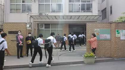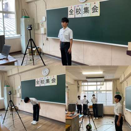 さて、今日のオンライン全校集会では創立記念日についてのお話をしました。1961(昭和36)年4月に大阪市立三国中学校の分校として北中島小学校と東三国小学校から生徒を迎えて始まった学校です。翌年4月に東三国中学校として創立され、1962(昭和37)年5月29日に大阪市立東三国中学校の開校式が実施されたこの日を創立記念日としたとのことです。今では想像もつかないですが、緑豊かな田園に皆さんの母校、東三国中学校が当時オープンしたのです。とても素敵ですね。続いて生徒会からの話では、先週行われた中間テストの答案用紙が返却されますのでテストで間違えた問題をもう一度やり直しをしましょうとあり、3年生に向けては中間テストが終わったからと言って気を抜くのではなく、今週実施される全国学力テストに向けて準備をしましょうと呼びかけていました。また、梅雨入りをしているので朝、天気予報をしっかりと見て必要な時には傘の用意も忘れないようにしましょうとあり、さらに1年生にとっては初めての各種委員会が放課後にあるので皆さんで協力してお願いしますとありました。自分たちの学校は皆さん一人ひとりが主役なのです。