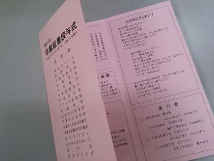 卒業証書を校長先生から順々に受け取っていきます。