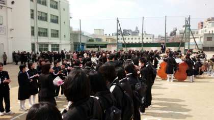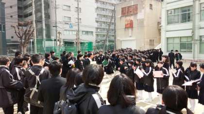 式後はご家族と在校生でつくる花道を通っていきます。